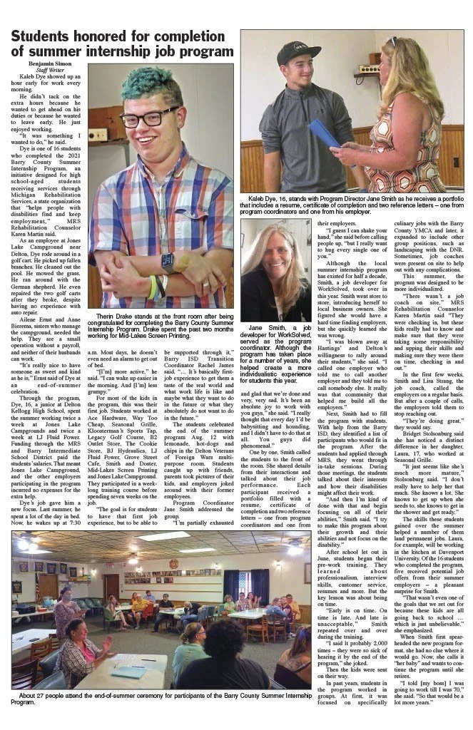 Each student will be placed at one specific job site for an 8-week period of time. Each student will be placed to the best of our ability with a job site of their choice and near their home. Each student will gain work readiness skills and leave the program with a resume, letters of recommendation, awards earned and a step closer to their future.